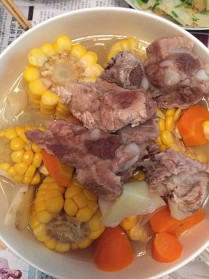 加入玉米的同时加入适量食盐 鸡精在煮半个小时
