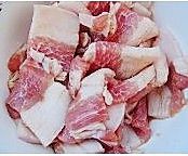 包菜一颗,洗净用手撕成小片,(我比较懒,所以就直接用刀切了)五花肉切三四片,切成薄片备用。