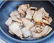 炒锅内放少许油,下入五花肉煸出油,肉变得透明;
