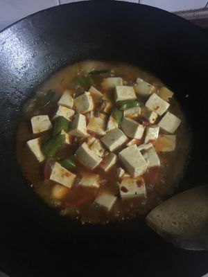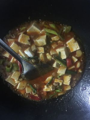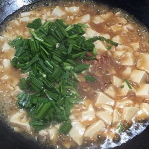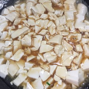 继续大火烧开,改小火焖片刻,待肉汁渗透进豆腐里面。