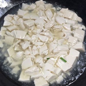 再放入水煮开,再倒入嫩豆腐,继续煮