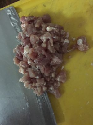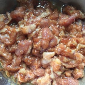 猪肉剁碎,加酱油,盐,胡椒粉,淀粉适量腌制片刻。