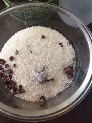海盐加花椒炒至微黄 我还加了麻椒 拍打在鸡身内外 多家按摩拍打 入味