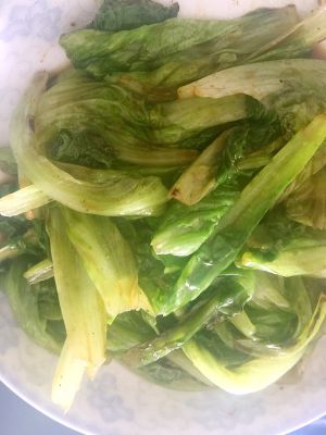 生菜手撕成块儿,大小随意,蒜切碎~