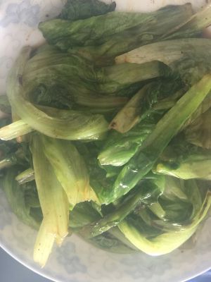 生菜洗净,锅里水烧开,放进生菜绰水。