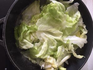将生菜加入锅内翻,翻一次就可以出锅