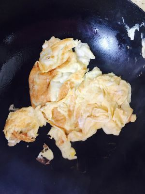 锅中放入少许油,炒鸡蛋,待鸡蛋炒成图中样子就可以了