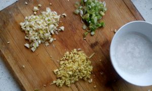准备好葱花、姜末、蒜末、水淀粉。