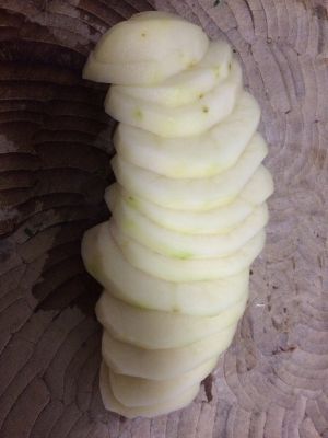 土豆切成片,上锅蒸25分钟,用筷子戳一下,能轻松戳穿就可以了。