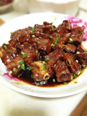把火再次调至中火煮5-7分钟左右,进行翻炒;然后调至小火收汁。这个收汁的步骤非常关键,时间也很重要,不然做出来的排骨既不晶莹透亮,又不入味儿。这个小火收汁的环境大概要20分钟左右吧^_^