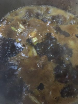 炒了2-3分钟后,放事先烧好的开水,水要刚好盖过排骨。大火煮大概25-30分钟。最后收汁时要关小火,不要让汁全部干完,那样就没那么好吃啦。