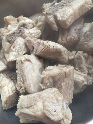 先烧开水,把小排放入滚水中绰一下,小排变色后再煮两分钟,捞出
