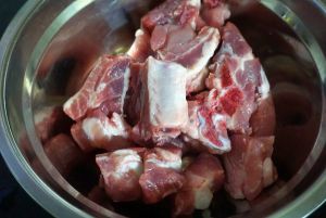 排骨冲洗干净,用水泡30分钟左右,喜欢这样泡,把一些血水泡出来。