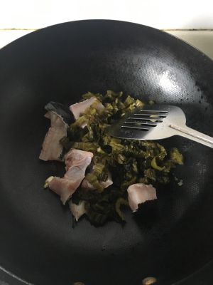 姜蒜辣椒炒香,加入酸菜炒香,加水煮