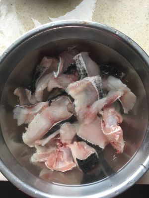 先把鱼洗净。我在菜场买的黑鱼,顺便让店主帮忙都杀好切片。