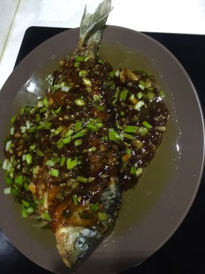 把做好的酱汁浇在鱼上,撒上葱花就可以了