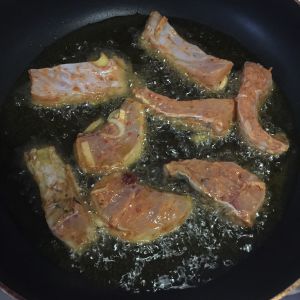 热锅凉油,待油冒少量烟时用筷子一个一个加入鱼段,途中翻面1至2次。
