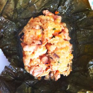 锅中放油 炒胡萝卜香菇丁 鸡肉 糯米饭,适量倒点香菇水 酱油,然后包在荷叶里。上锅蒸20分钟。
