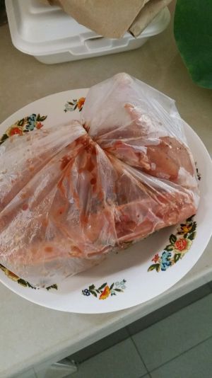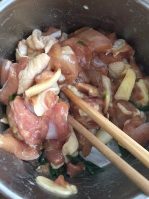 腌上鸡肉。
