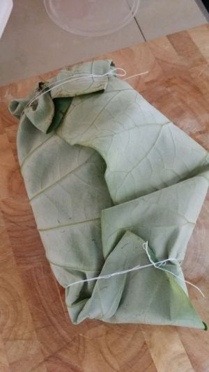 采一片荷叶洗净,没有荷叶可以用香蕉叶代替