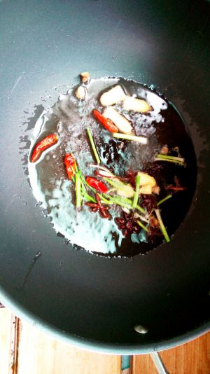 锅里上油作料炒香