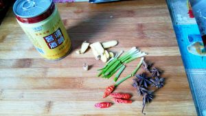 加水,放入八角,香叶,生姜,烧开后转小火,煲1个小时,放入冰糖,大火收汁。
