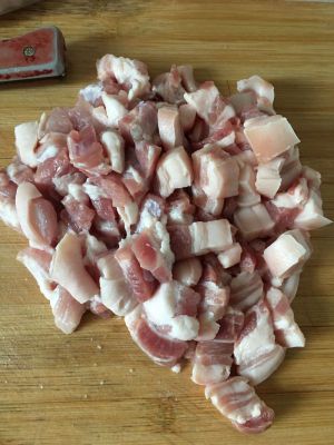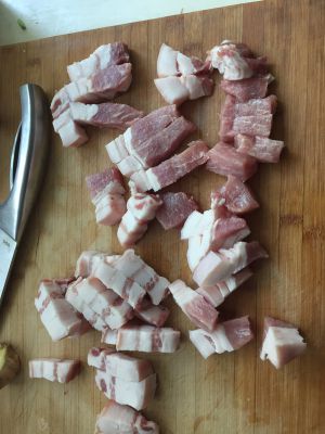 留几块肥膘,小火熬出猪油当底油,油渣弃用