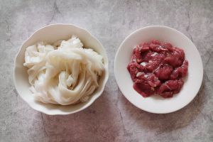 河粉用凉水浸泡8-10小时,待用。如果没有提前泡的话就在煮的过程多煮一会