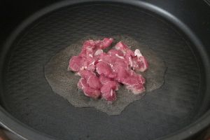 油锅烧热,加入适量植物油,油热后下入牛肉。