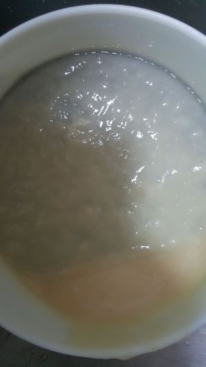 准备四个鸡蛋,只要蛋清,然后用打蛋器打出奶油状,然后加入鸡溶和适量水,还有奶油状一起用破壁机搅拌成汤状的鸡溶倒出备用。 (最方便快捷的是这步用打蛋器把蛋清打成奶油状这步可以省略,换做直接把蛋清打的刚刚准备好的鸡胸肉溶里面搅拌均匀即可)