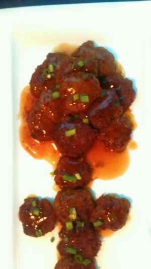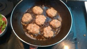 将拌好的肉馅做成乒乓球大小的丸子,上油锅,油温不要太热,用文火煎丸子,要让丸子均匀受热,表皮酥脆就可以出锅装盘。