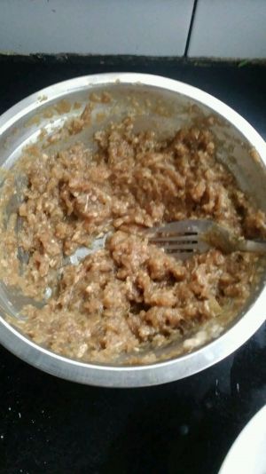 牛肉馅用水,一个方向打上劲,谁不要太多,少半碗就可以了