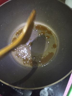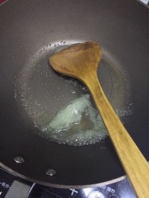 锅清洗干净,放入一点油,小火把冰糖炒出焦糖色。