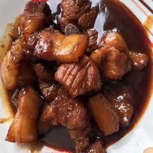 炖煮至筷子可以轻轻插透五花肉,即可大火收汁。颜色不够可以加一点老抽。觉得不甜的可以加一点白糖调整。