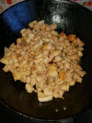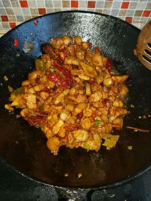 大火收汁,铲子需要不停翻炒。肉红润油亮,汁基本收干即可关火盛出。