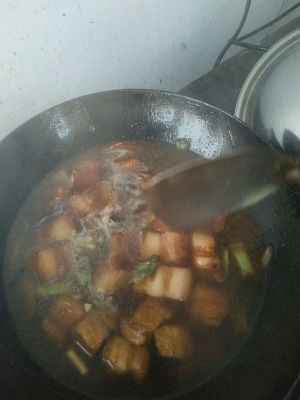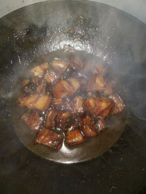 如果想加入其他辅料,例如土豆、胡萝卜等,要在五花肉炖煮至1.5个小时的时候加入,最后一起收汁。