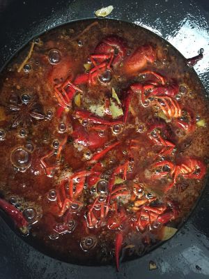 炒制: 1.将辣椒切成小段备用 2.炒锅加热后倒入适量花生油 3.锅里油起小泡时,将花椒、辣椒倒入锅中爆锅煸炒 4.炒香后将腌好的小龙虾倒入锅中(此处请注意: 注意只放小龙虾,汤和葱姜蒜留在锅里) 5.炒2分钟后将锅里的汤和葱姜蒜一并倒入锅中,如果汤比较脏,就不要用了,在锅里重新加入料酒、盐、味极鲜 6.锅里加入冷水、冰糖,盖上锅盖,煮10分钟 7.把做好的小龙虾装入盆中,上桌开吃