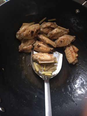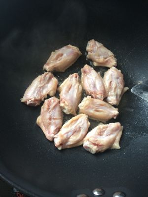 3 锅里倒油,烧热后加入葱姜蒜,翻炒几下,把鸡翅倒入锅中炒至发白,加入酱油、可乐,闷10分钟就好了!