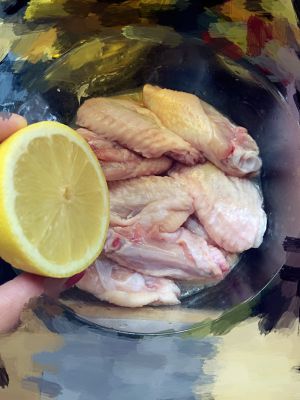 柠檬挤出汁泡鸡翅5分钟左右去腥,这步很重要哦!