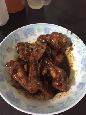拿出翅根,翻个,继续微波2分钟。这时加入一点生抽,自己看着加,主要是上色,还有会有咸味。。
