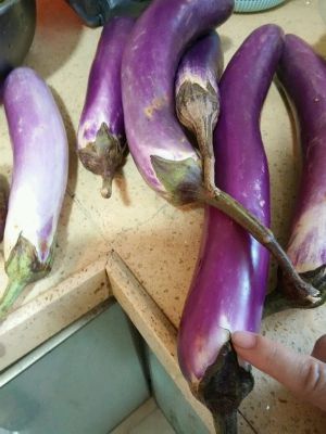 先选好茄子,长的会比较好吃一些,选茄子的时候注意肚子不要太大的,太大里面的籽多说明茄子老了,口感不好。
