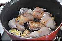 倒入猪蹄,放入少量的白糖,是为了融化之后让更多的佐料附着在猪蹄上