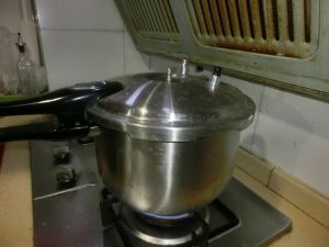 放入干辣椒同煮,开锅后转小火盖盖子焖煮1个小时