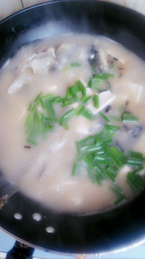 鱼熬好加豆腐大火熬三分钟,后再加点黑糊椒和鸡精,放点葱花和香油就可以出锅了