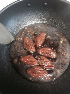 炒的差不多了,加清水没过鸡翅,加入老抽、醋、多多的糖(糖多了才够可乐的那种甜味),煮沸后小火炖15分钟再大伙收汁。