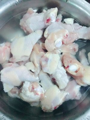 鸡翅用凉水泡一会,把血水和杂质泡出来,然后洗干净