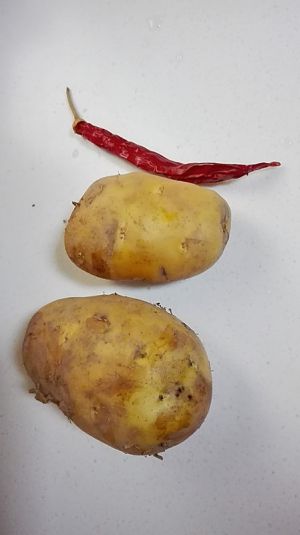 准备土豆和干红椒;干红椒用少许即可,能吃辣的就多放点;