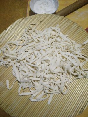 将细面煮成七至八分熟后捞出沥干备用,进行下面两步时别忘了时不时的拿双筷子把面条弄散防止黏在一起