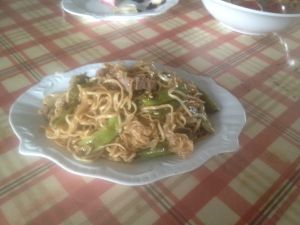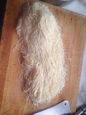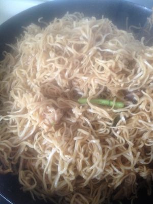 放入面,简单炒一炒,最后撒上葱花,大功告成。哦…还差刷碗才算真正的大功告成!
