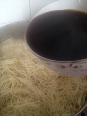 拌入10g色拉油和一汤勺混合的老抽和生抽,搅拌均匀!